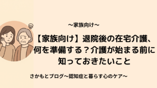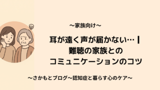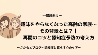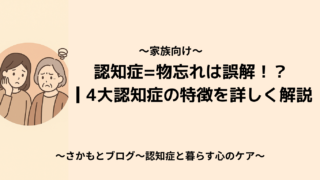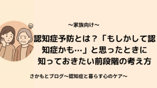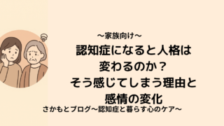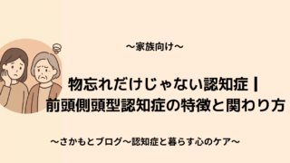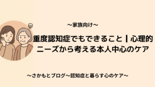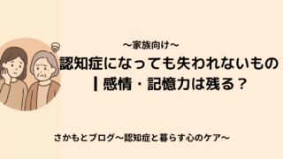 認知症と暮らす心のケア 2025.11.19 2025.10.25 はじめましてさかもとです。「認知症と暮らす心のケア」へようこそ。このブログでは、ご家族・医療従事者・介護士など、認知症と関わる全ての方に向けた認知症ケアや心理学に関する情報を発信していきます。 記事一覧はこちら お問い合わせはこちら
